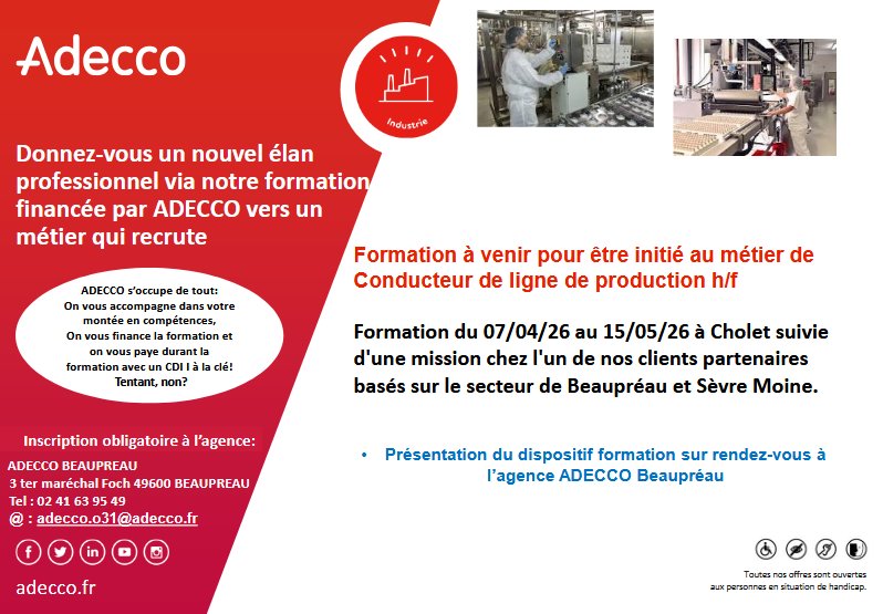 PROJET DE FORMATION ADECCO VERS UN MÉTIER QUI RECRUTE: CONDUCTEUR DE LIGNE DE PRODUCTION H/F