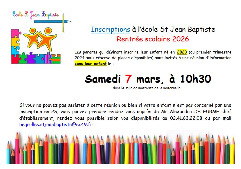 Inscriptions à l’école St Jean-Baptiste