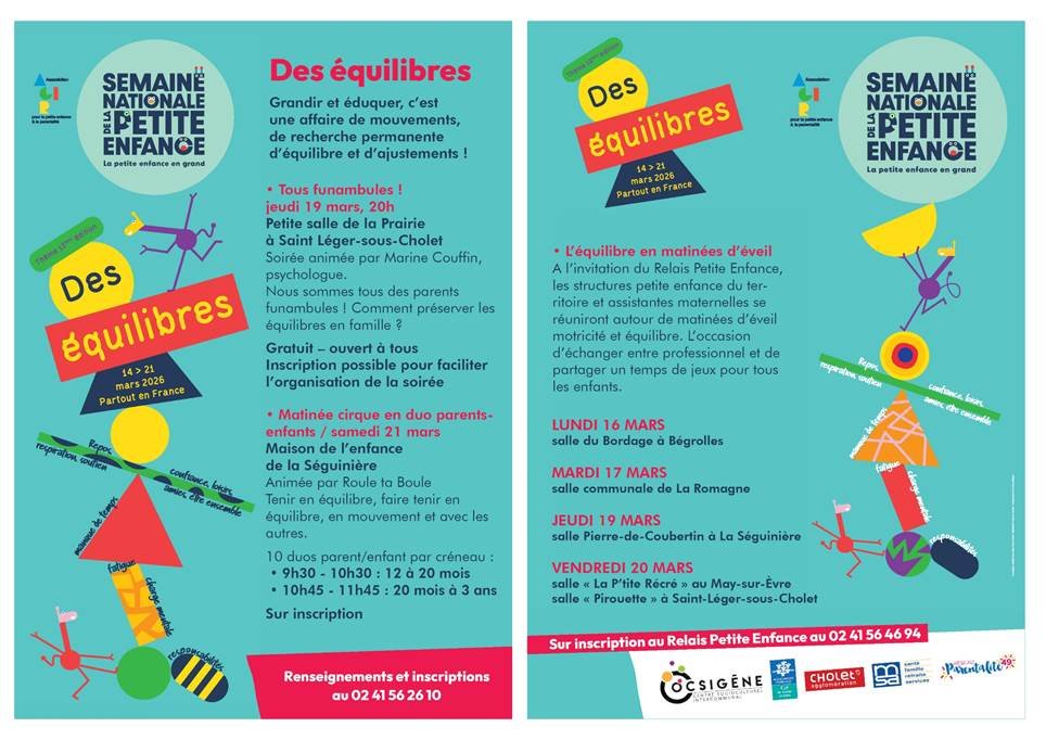 soirée parents avec une psychologue, matinée cirque en duo parent-enfant et temps d’éveil motricité pour les tout-petits et les professionnels.